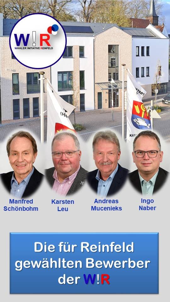 Mit Manfred Schönbohm, Andreas Mucenieks, Karsten Leu und Ingo Naber besteht das neue Team aus 4 Stadtverordneten sowie mehreren bürgerlichen Mitgliedern, die sich auf die weitere Zusammenarbeit für Reinfeld freuen und motiviert in die neue Wahlperiode gehen. „Wir haben einen sehr engagierten Wahlkampf geführt, der uns als Team noch mehr zusammen geschweißt hat. „Gemeinsam wollen wir nun die Probleme der Zukunft angehen und mit unserem Engagement weiterhin nach guten Lösungen für Reinfeld suchen.“ erläutert Schönbohm die weitere Arbeit