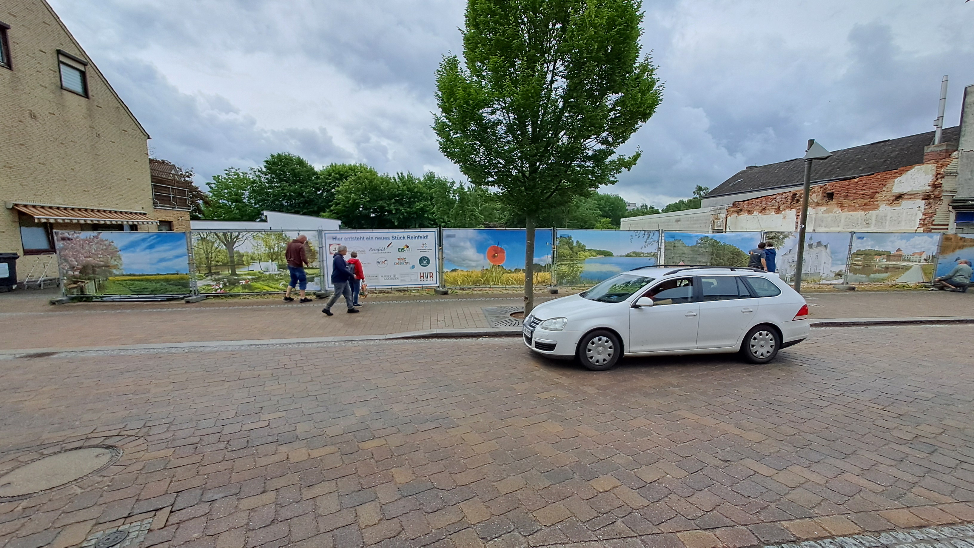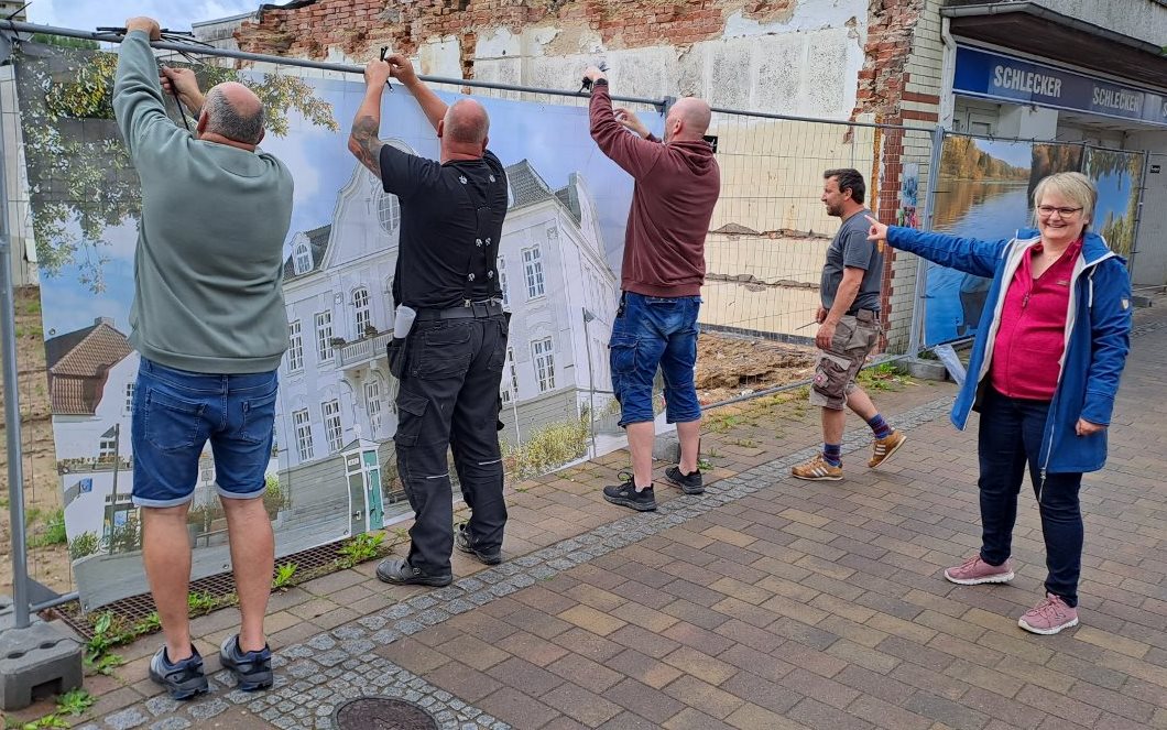 Der derzeitige Anblick auf die Baulücke und teils abgerissene Gebäude war der Reinfelderin aber ein Dorn im Auge. „Wie sollen Besucher sich in der Stadt wohlfühlen und sich dort aufhalten wollen, wenn der Ausblick so schrecklich ist?“ fragte sie sich und besprach das Problem auf einer Vorstandssitzung. Schnell wurde dort die Idee mit den Bauzaunbannern geboren.
